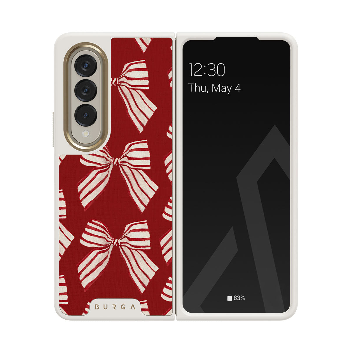 設計元素包含:蝴蝶結、條紋、紅色、白色、節日圖案