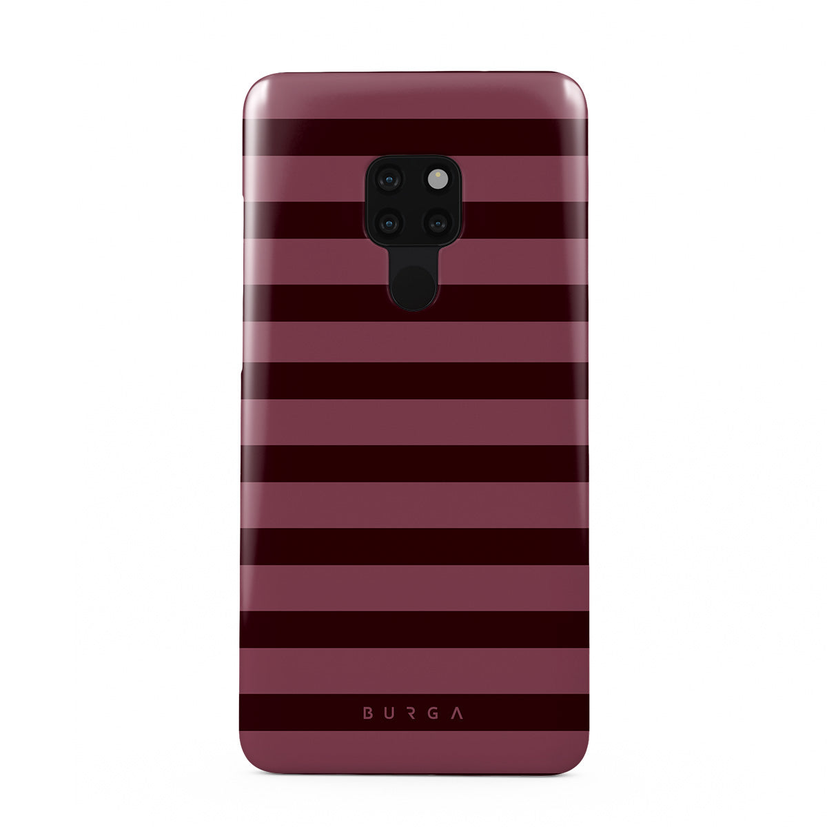 此設計特色:復古的酒紅色和粉紅色橫條紋