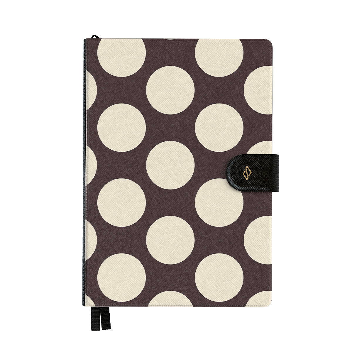 此設計特色: 深色背景搭配大奶油色圓點。