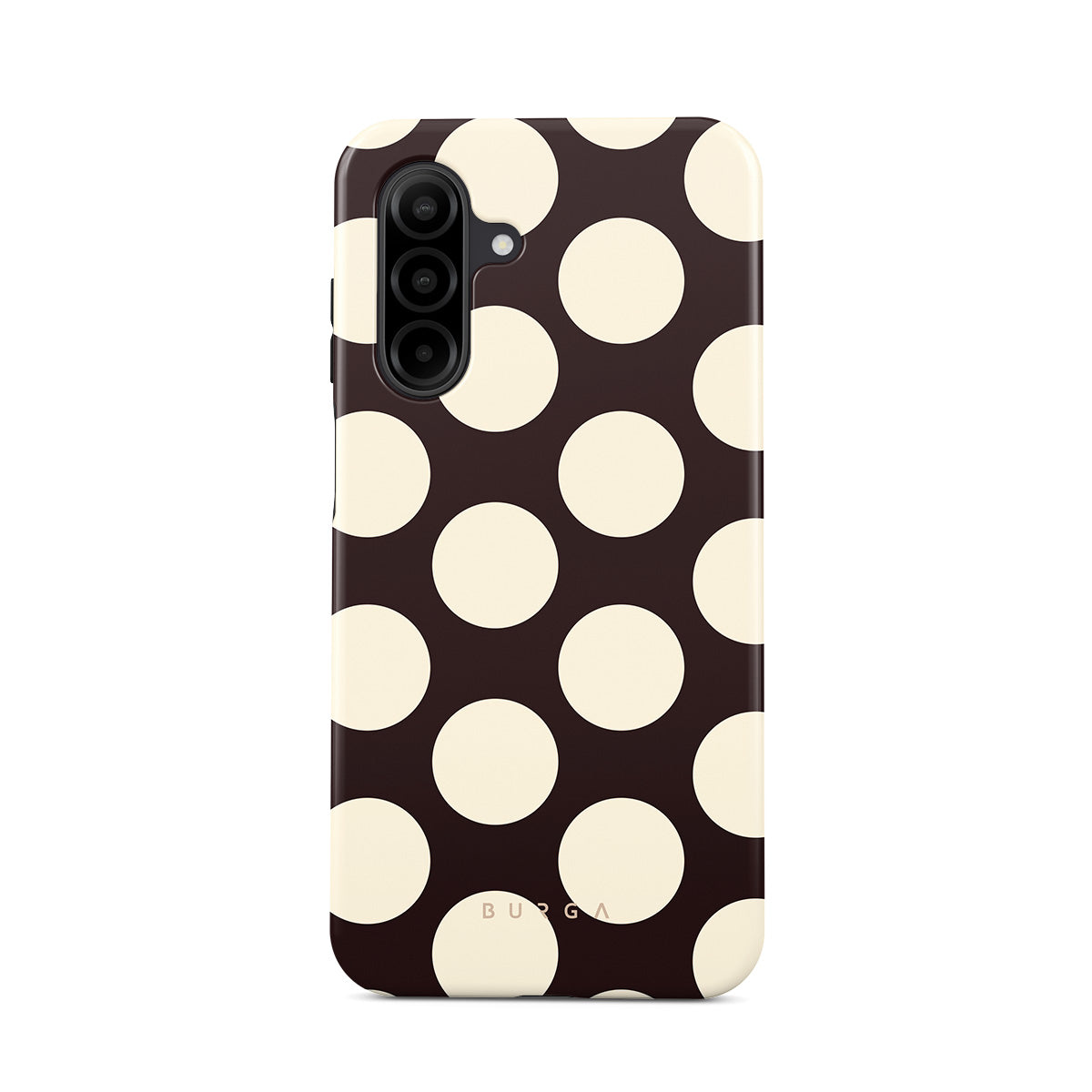 此設計特色: 深色背景搭配大奶油色圓點。