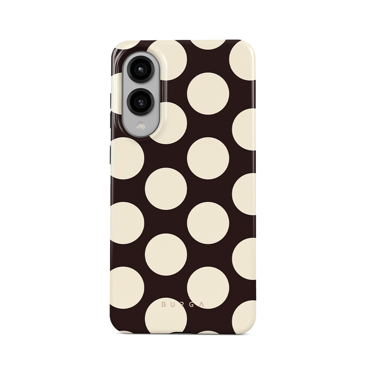 此設計特色: 深色背景搭配大奶油色圓點。