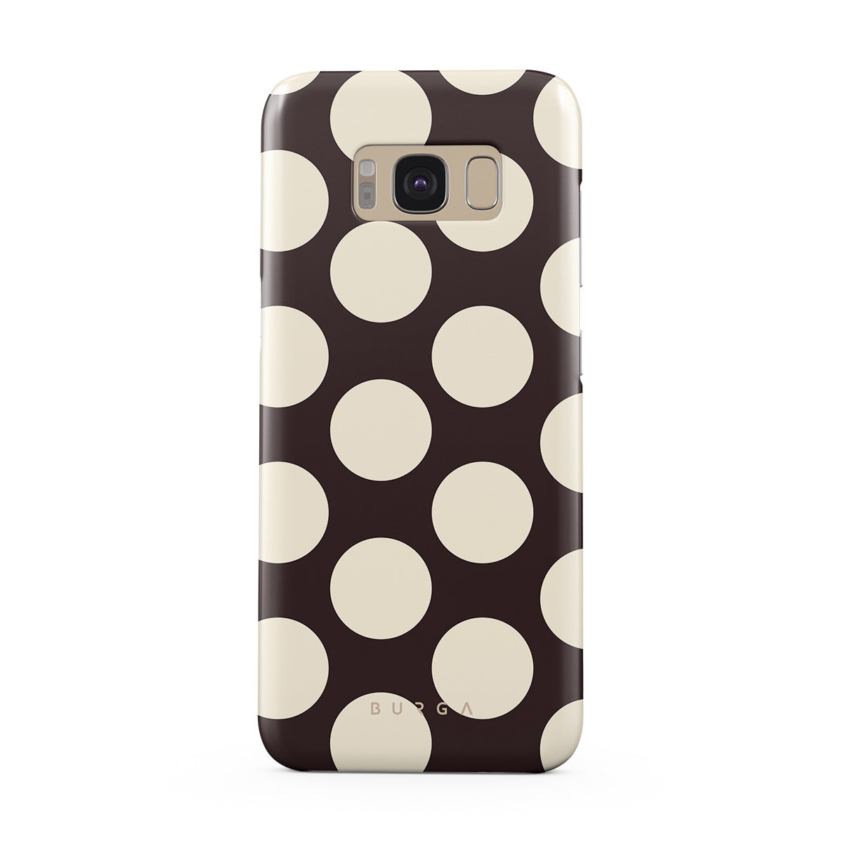 此設計特色: 深色背景搭配大奶油色圓點。