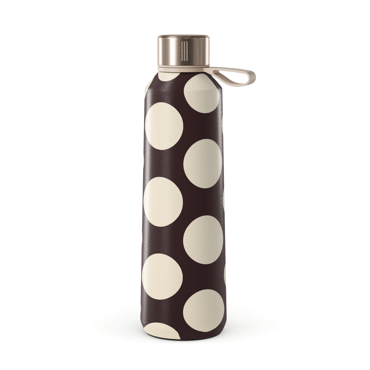 此設計特色: 深色背景搭配大奶油色圓點。