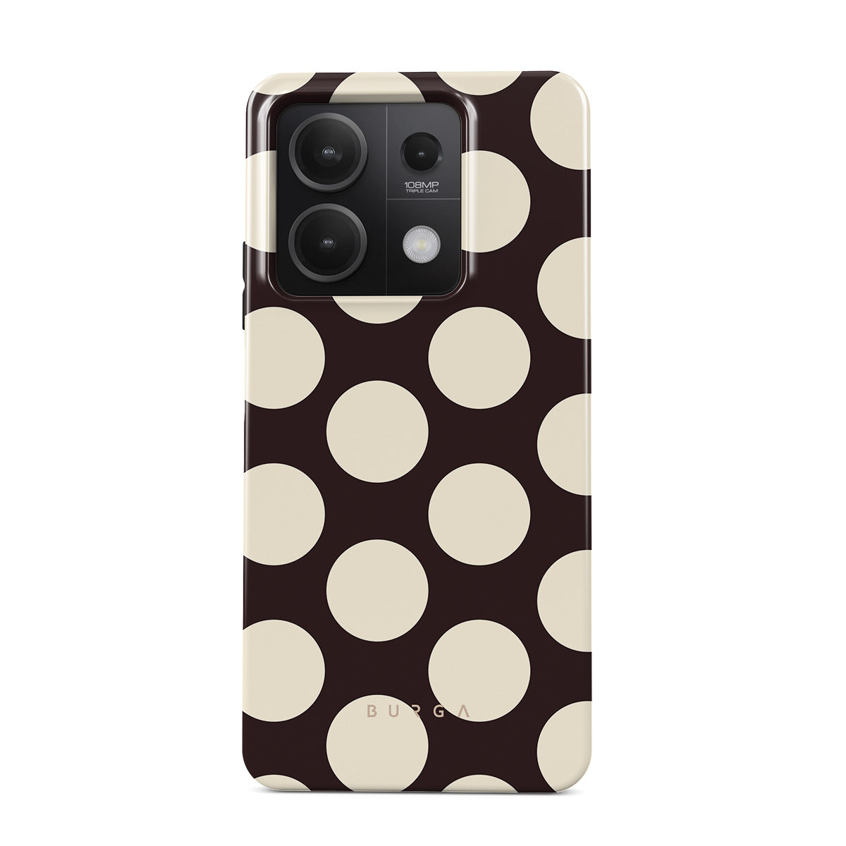 此設計特色: 深色背景搭配大奶油色圓點。