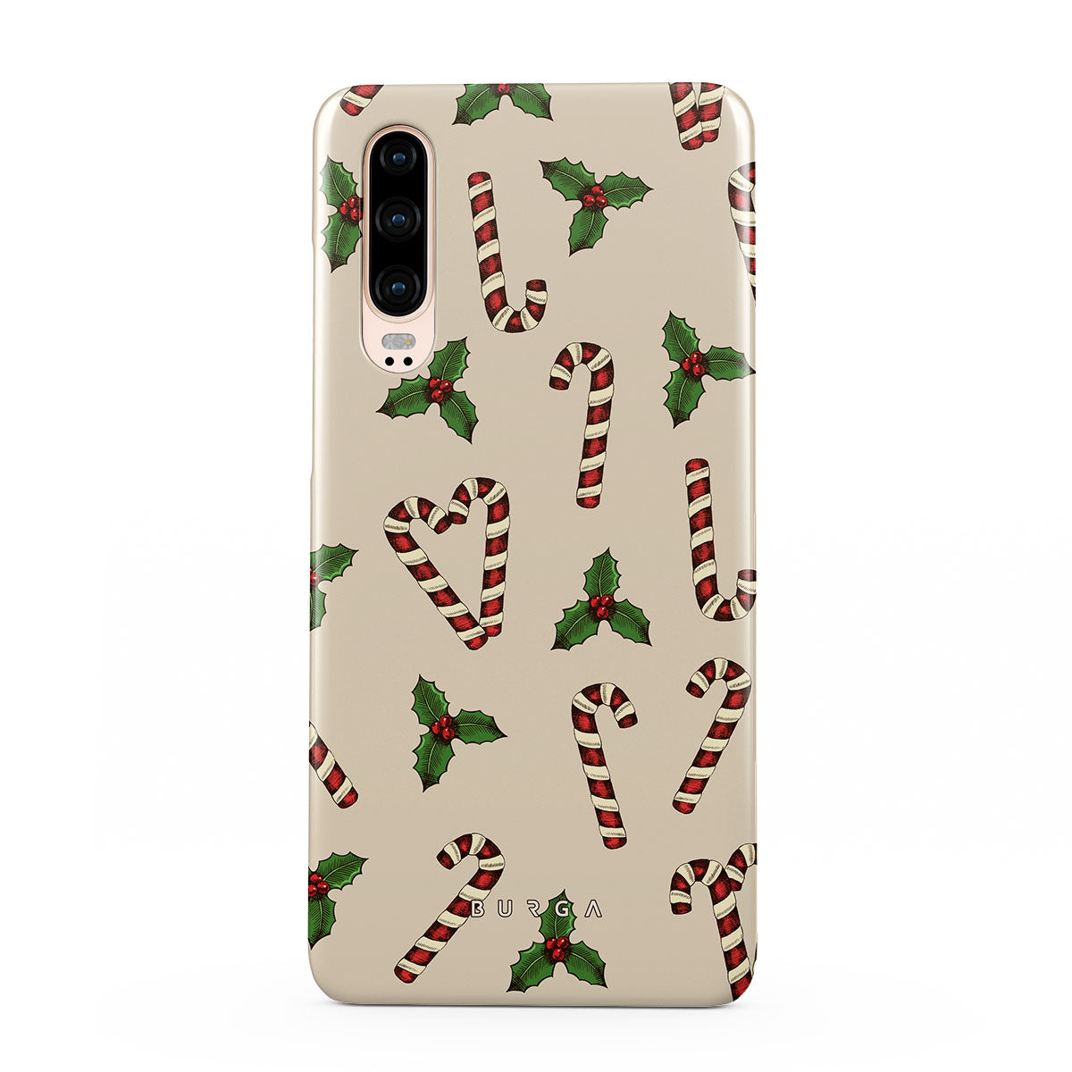 設計元素包含:柺杖糖、冬青樹、綠色、白色、節日圖案