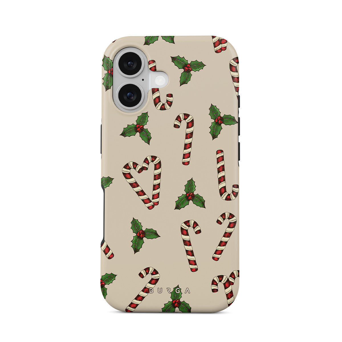 設計元素包含:柺杖糖、冬青樹、綠色、白色、節日圖案