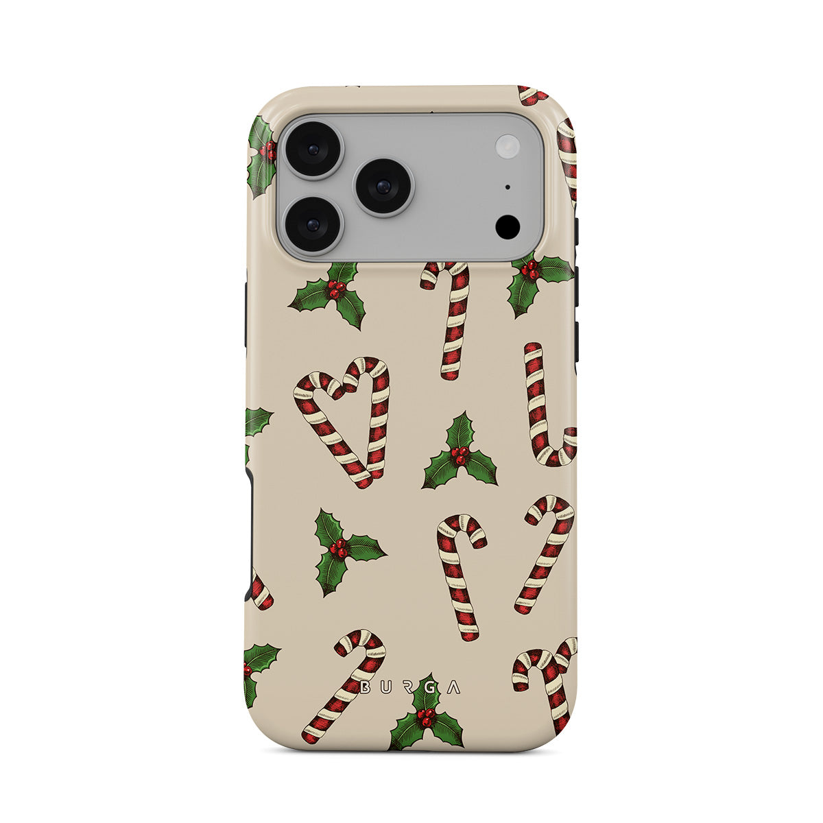 設計元素包含:柺杖糖、冬青樹、綠色、白色、節日圖案
