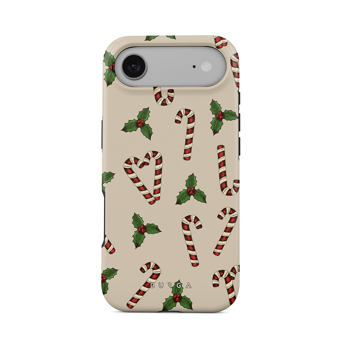 設計元素包含:柺杖糖、冬青樹、綠色、白色、節日圖案