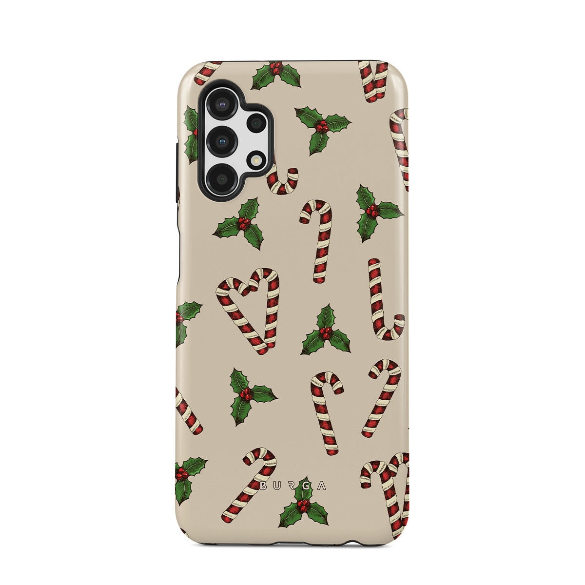 設計元素包含:柺杖糖、冬青樹、綠色、白色、節日圖案