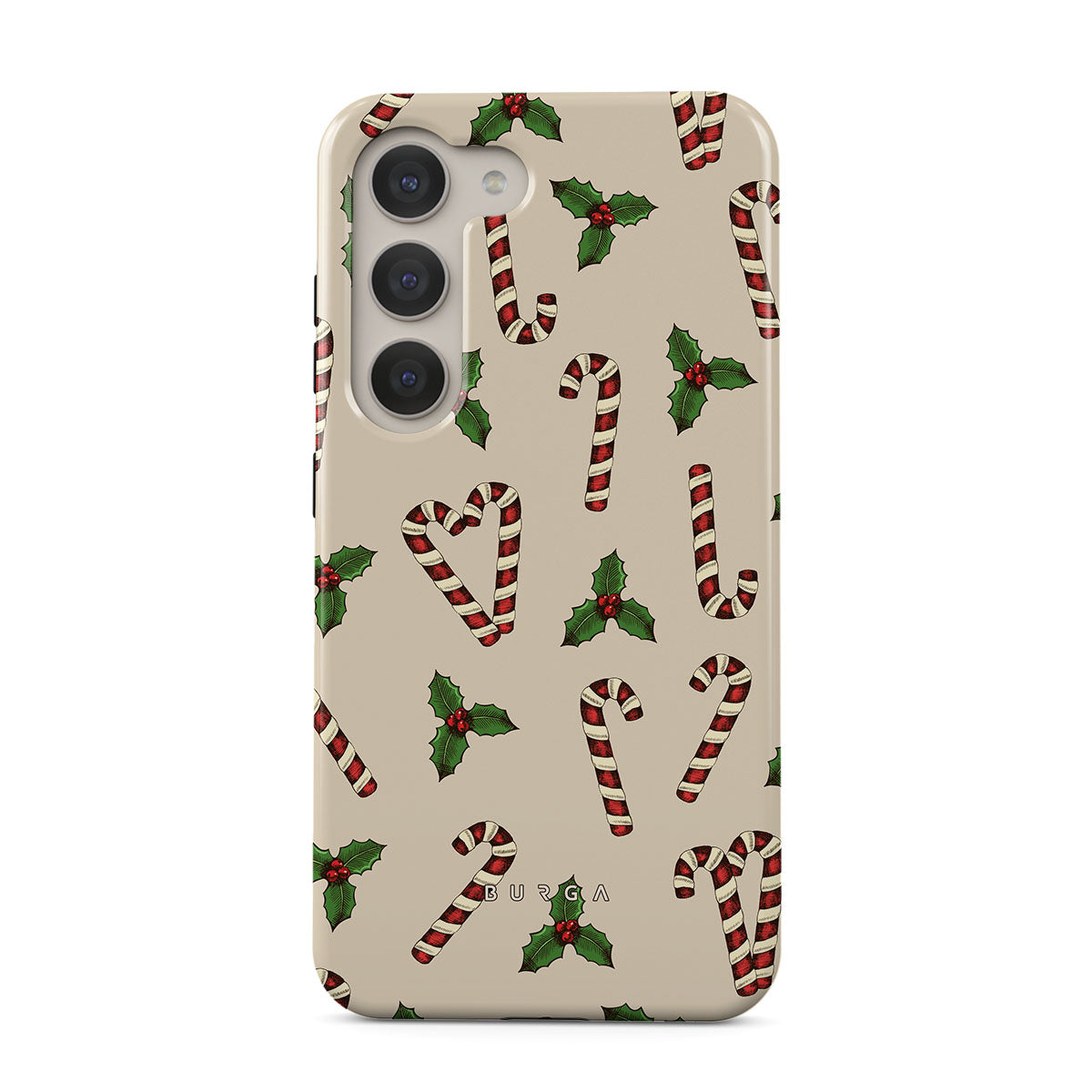 設計元素包含:柺杖糖、冬青樹、綠色、白色、節日圖案