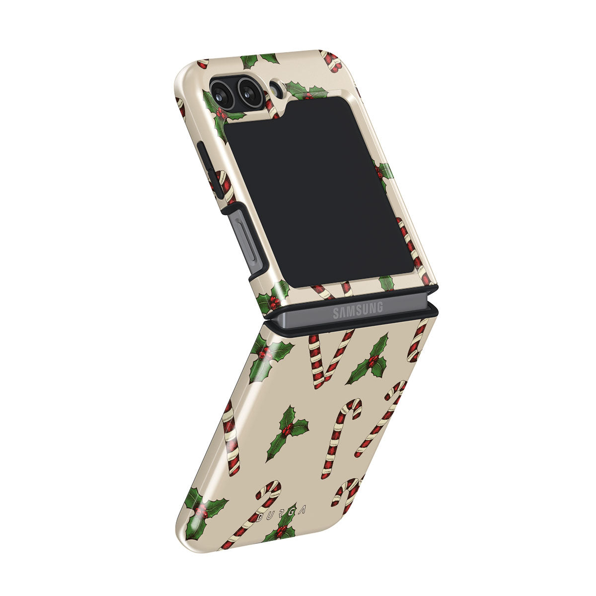 設計元素包含:柺杖糖、冬青樹、綠色、白色、節日圖案