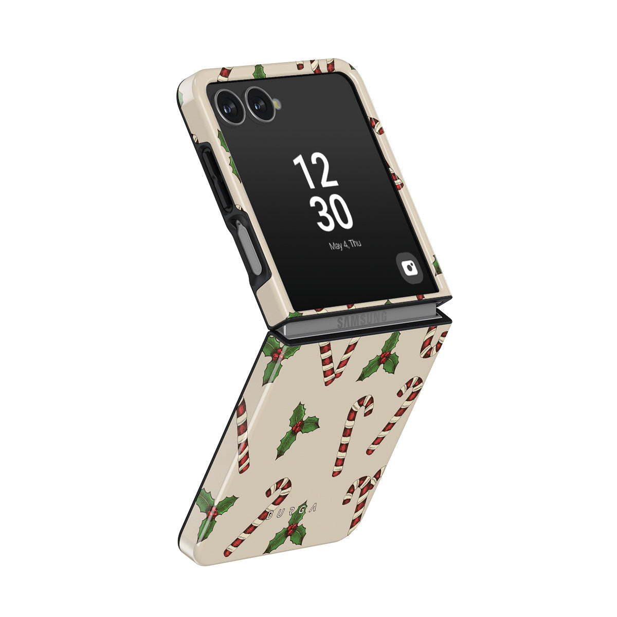 設計元素包含:柺杖糖、冬青樹、綠色、白色、節日圖案