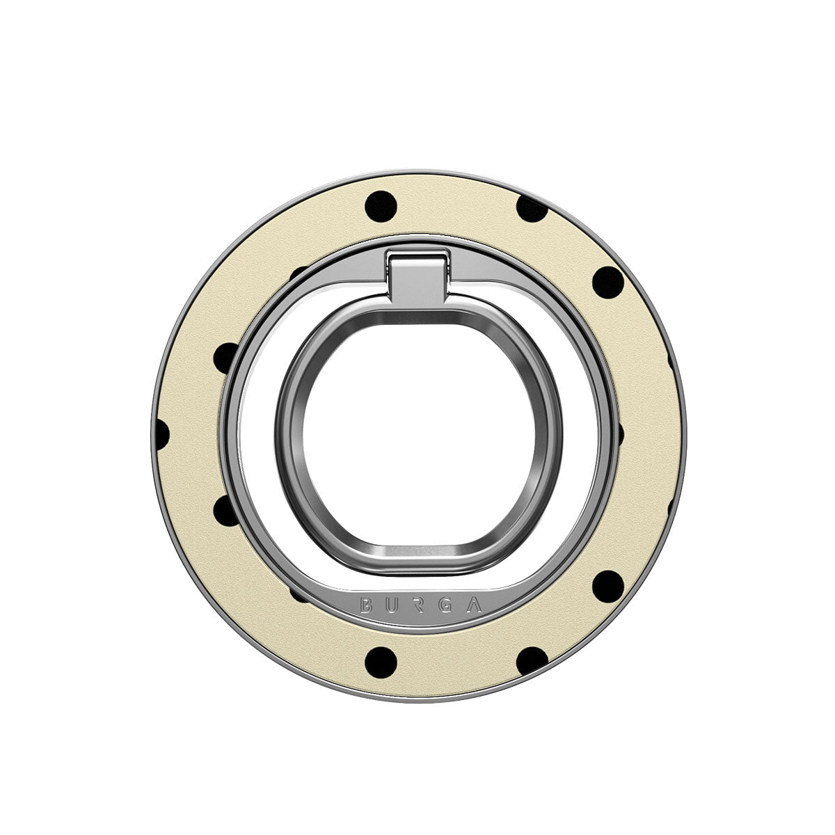 這款磁吸指環支架喀一聲即可穩穩吸附,不需黏膠、不麻煩。滑手機時可以單手使用,也可以追劇時當作支架,抑或作為搭配 BURGA 手機殼的時尚配件。