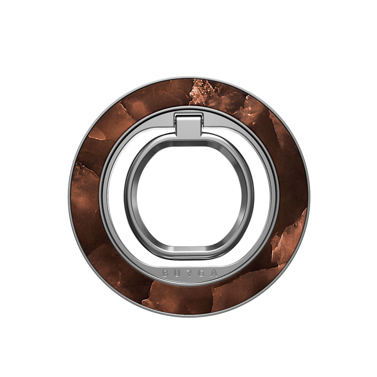 這款磁吸指環支架喀一聲即可穩穩吸附,不需黏膠、不麻煩。滑手機時可以單手使用,也可以追劇時當作支架,抑或作為搭配 BURGA 手機殼的時尚配件。