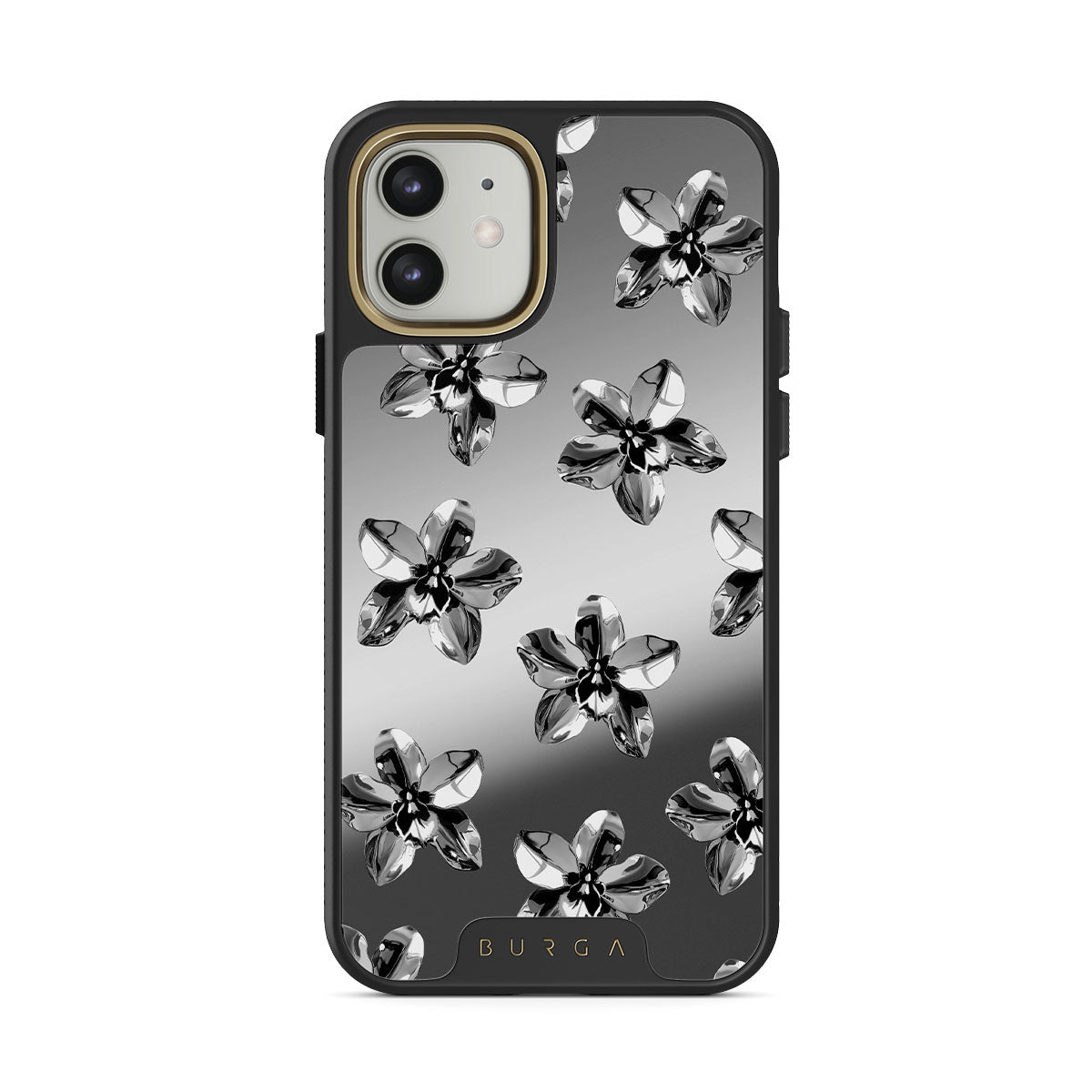 此設計特色:銀色花朵、金屬細節、鏡面