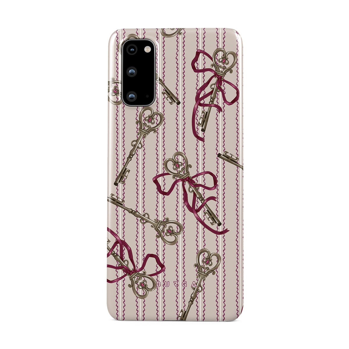 此設計特色: 古董鑰匙、蝴蝶結、粉色絲帶、條紋背景
