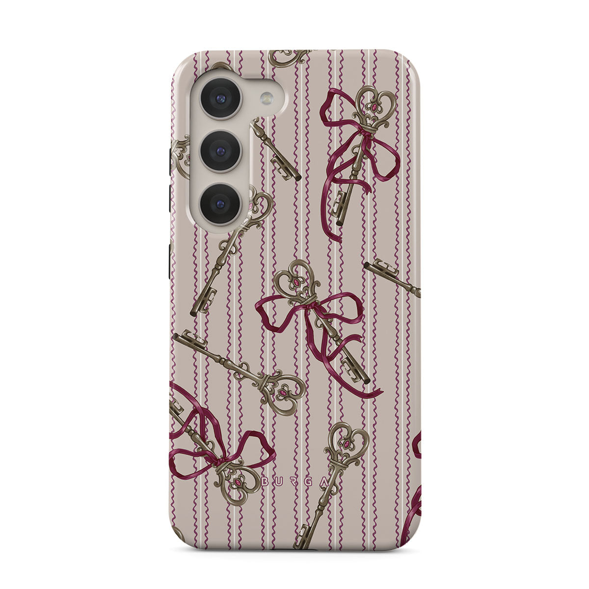 此設計特色: 古董鑰匙、蝴蝶結、粉色絲帶、條紋背景