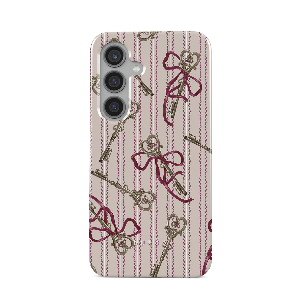 此設計特色: 古董鑰匙、蝴蝶結、粉色絲帶、條紋背景