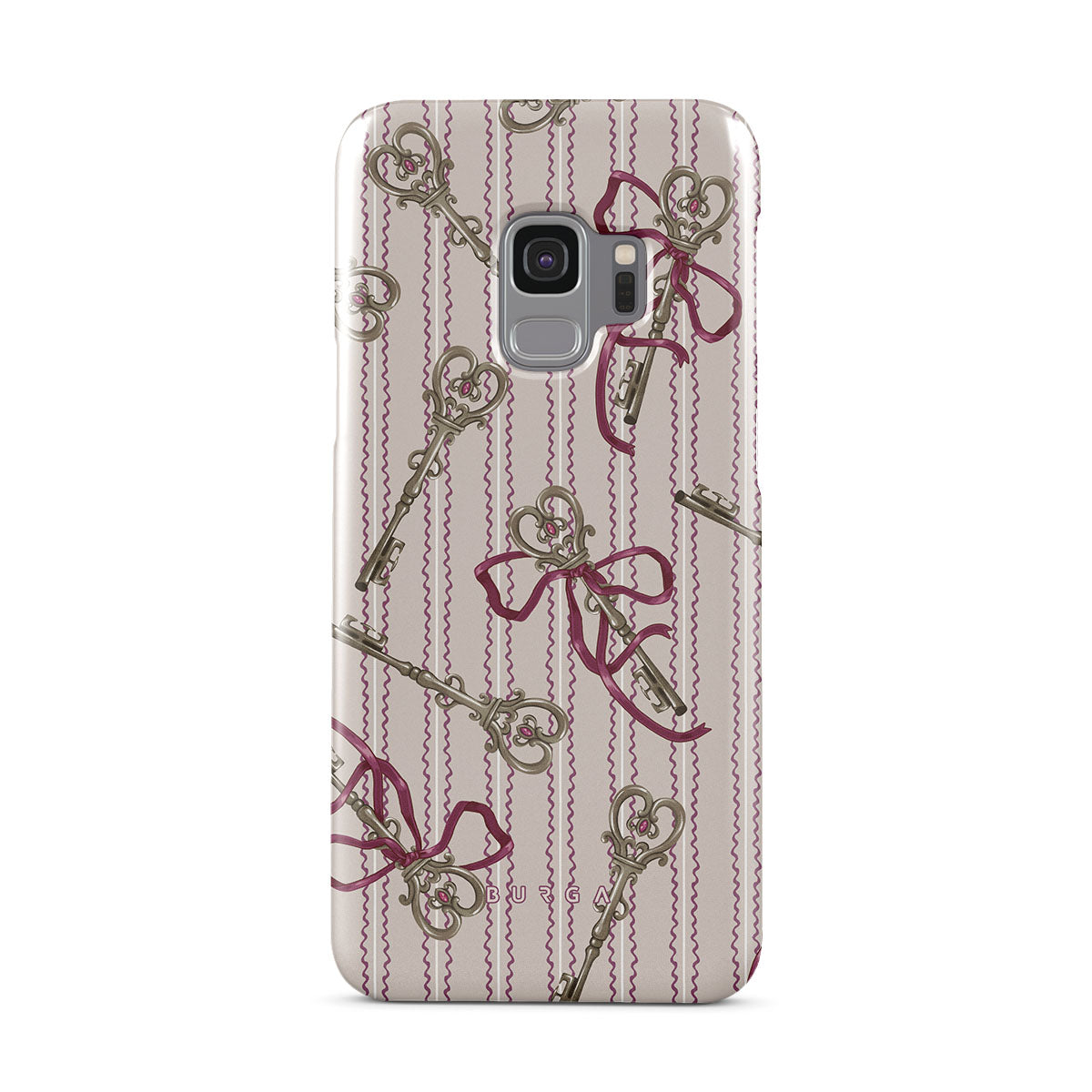 此設計特色: 古董鑰匙、蝴蝶結、粉色絲帶、條紋背景