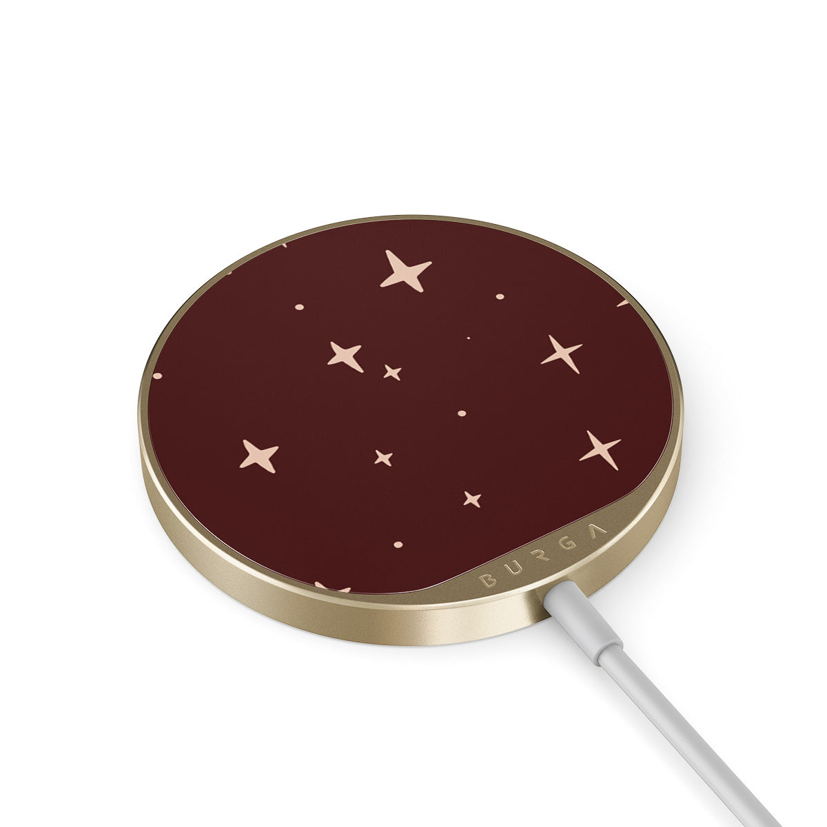 內建 1.5 公尺傳輸線,無論在辦公室、沙發上,還是機場休息室,都能輕鬆充電。BURGA 玻璃背板提供超過 500 款設計任君選,讓充電器與手機殼一樣時尚。