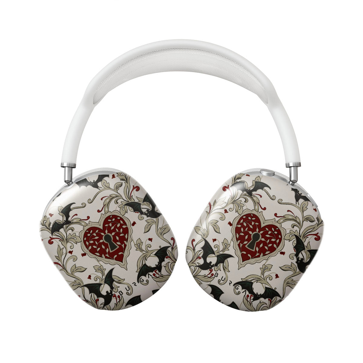 此設計特色:心形、鎖頭、蝙蝠、哥特風格圖案