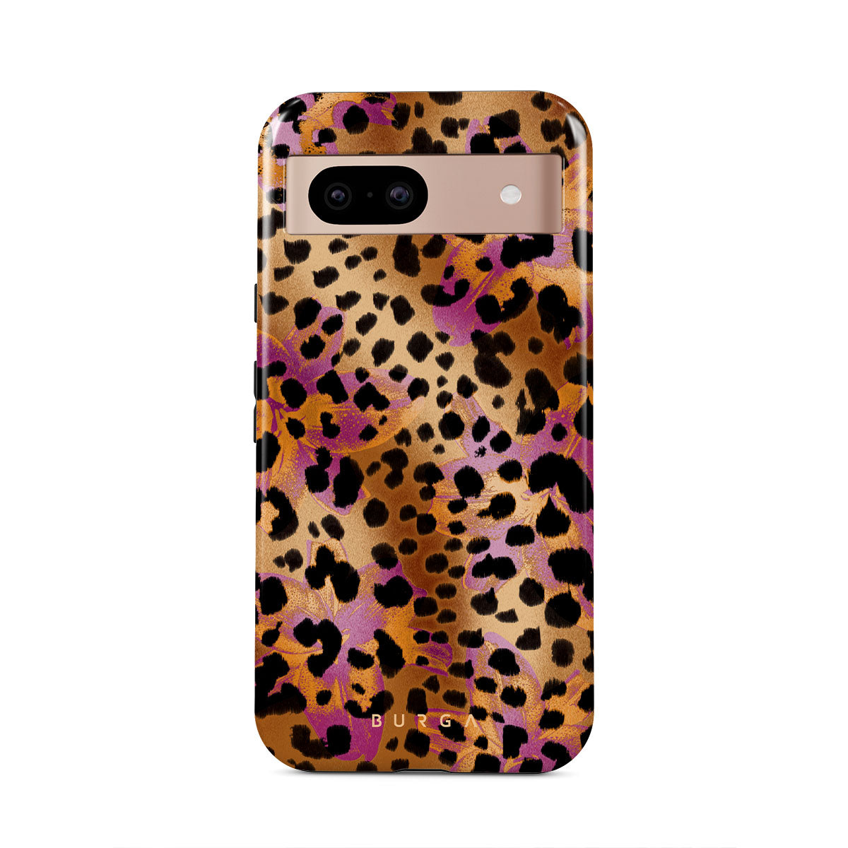 此設計特色:豹子印花,棕色,橙色,紫色,動物印花