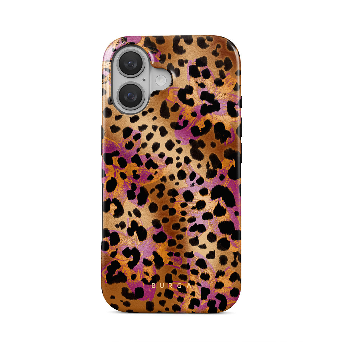 此設計特色:豹子印花,棕色,橙色,紫色,動物印花