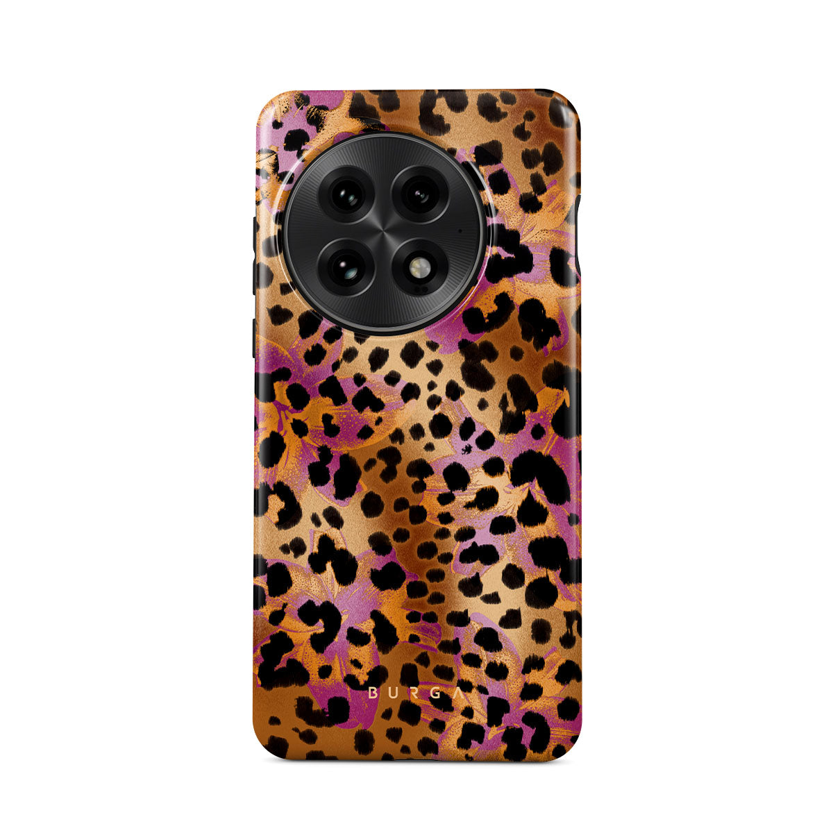 此設計特色:豹子印花,棕色,橙色,紫色,動物印花