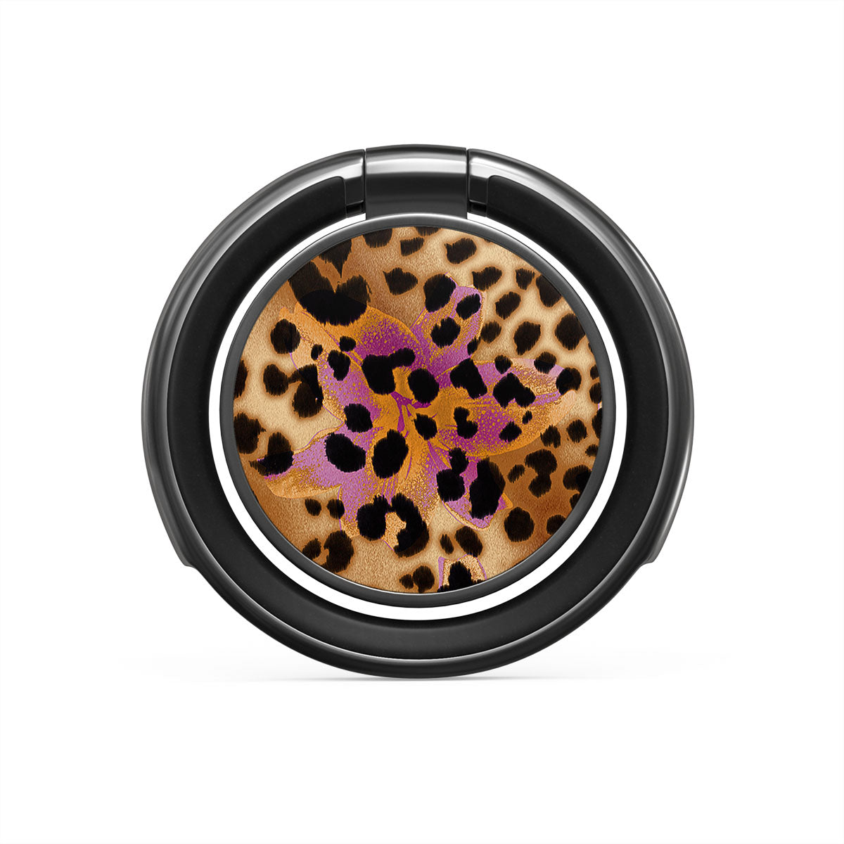 此設計特色:豹子印花,棕色,橙色,紫色,動物印花