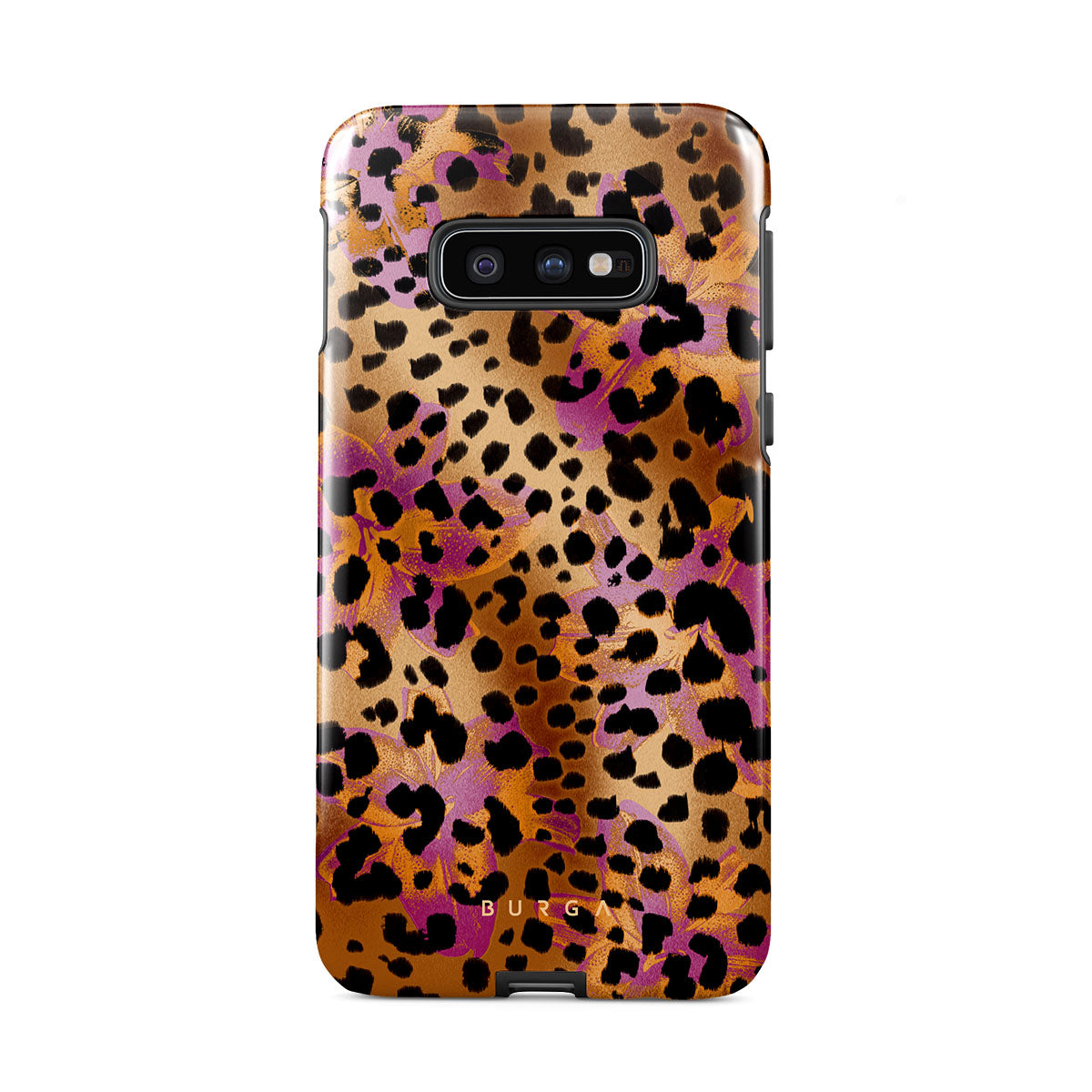 此設計特色:豹子印花,棕色,橙色,紫色,動物印花