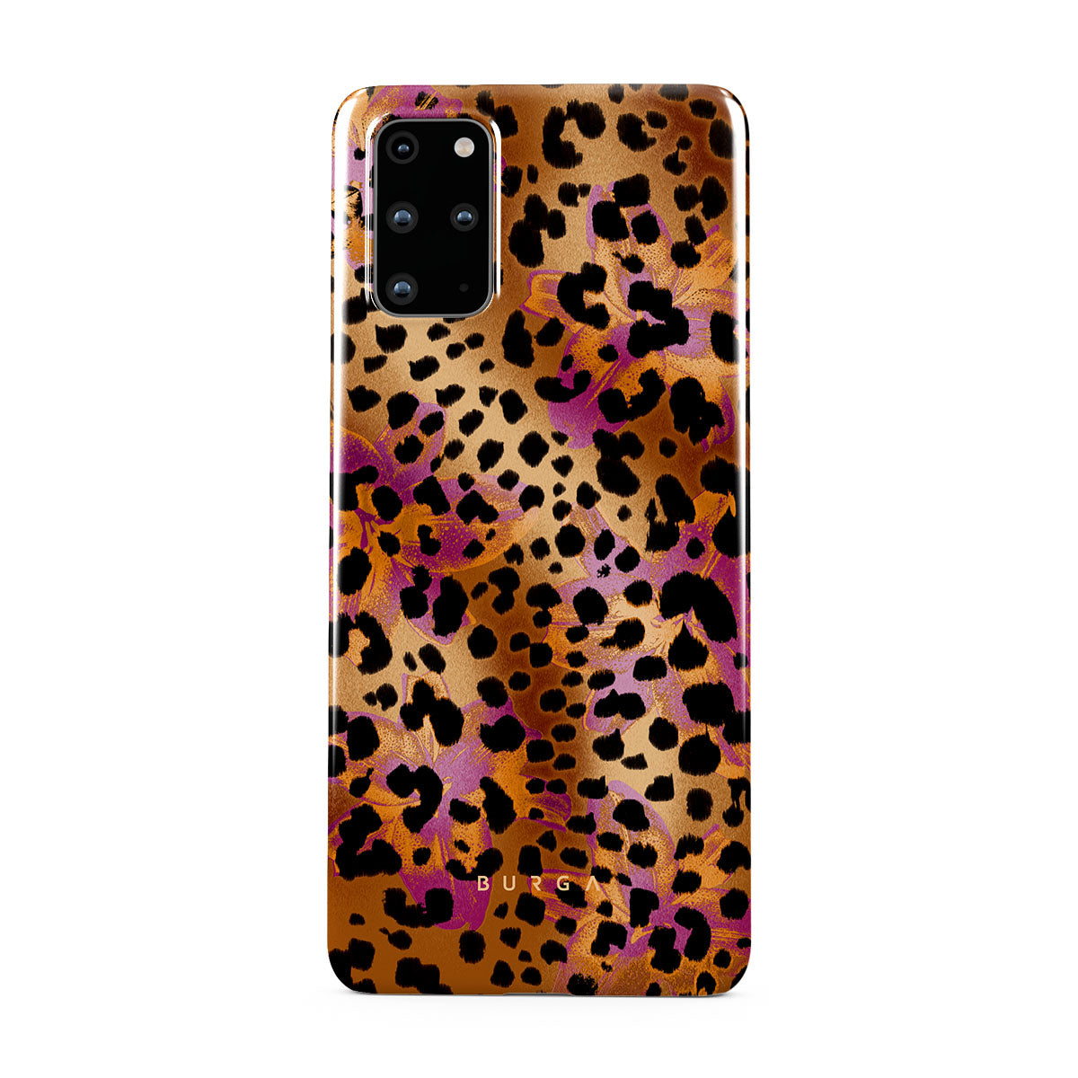 此設計特色:豹子印花,棕色,橙色,紫色,動物印花