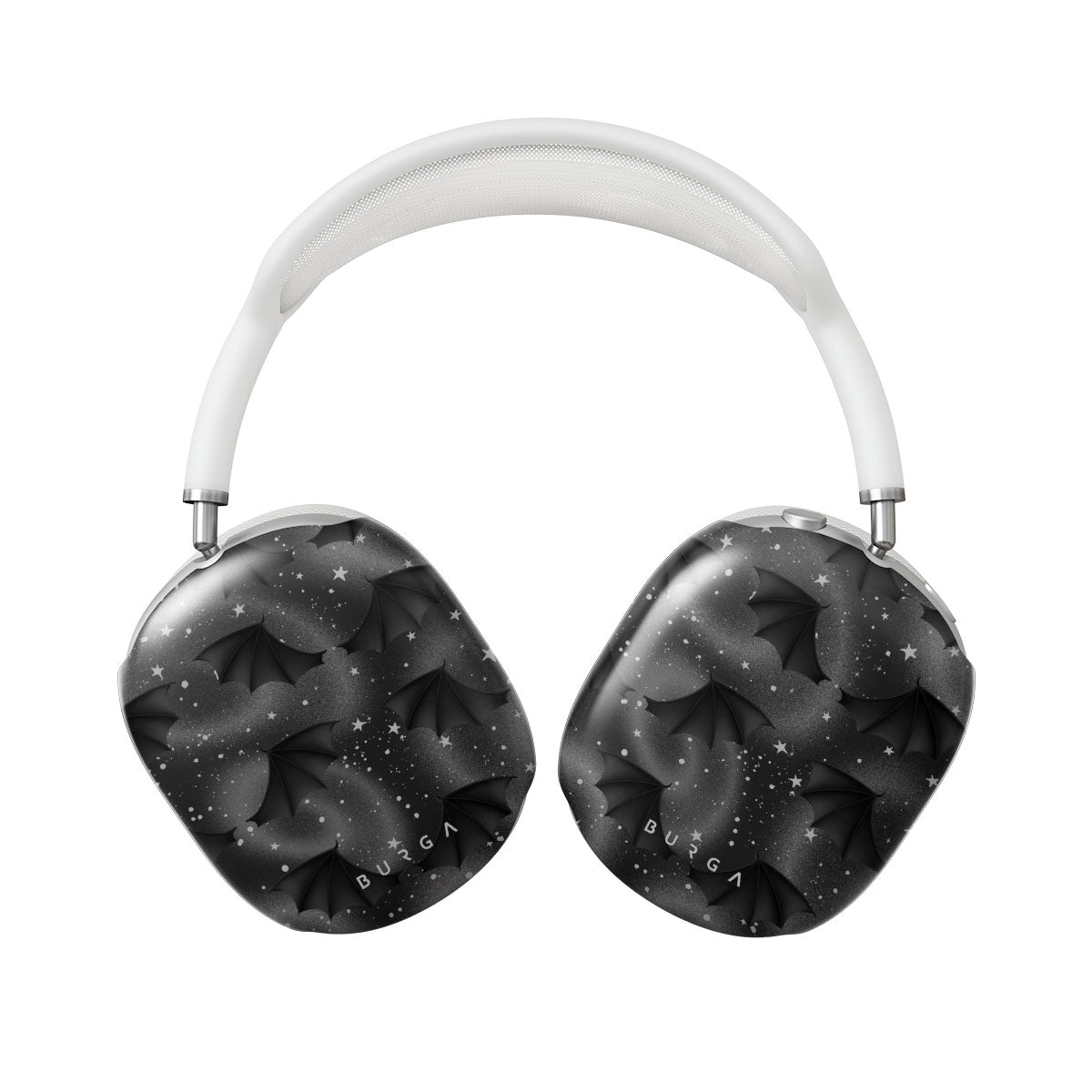 此設計特色:蝙蝠翅膀、星星、神秘漩渦、黑色天空