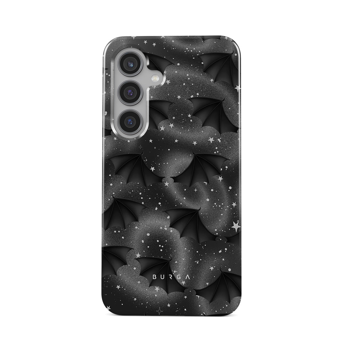 此設計特色:蝙蝠翅膀、星星、神秘漩渦、黑色天空