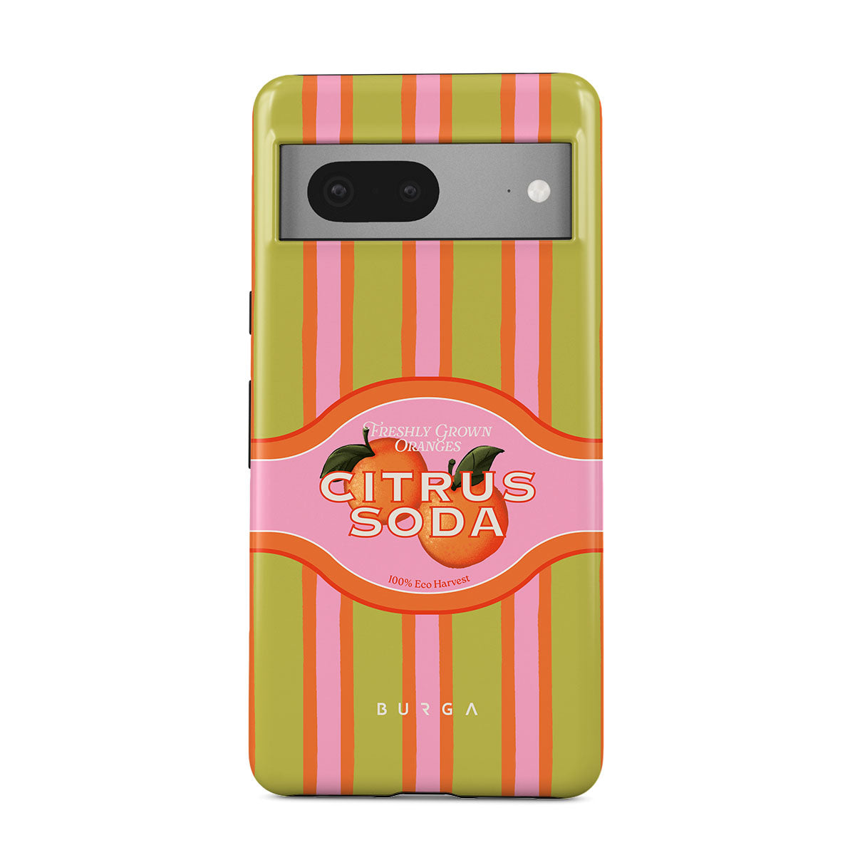 此設計特色: 鮮豔的柑橘條紋,文字,柑橘植物,蜜柑,葡萄柚