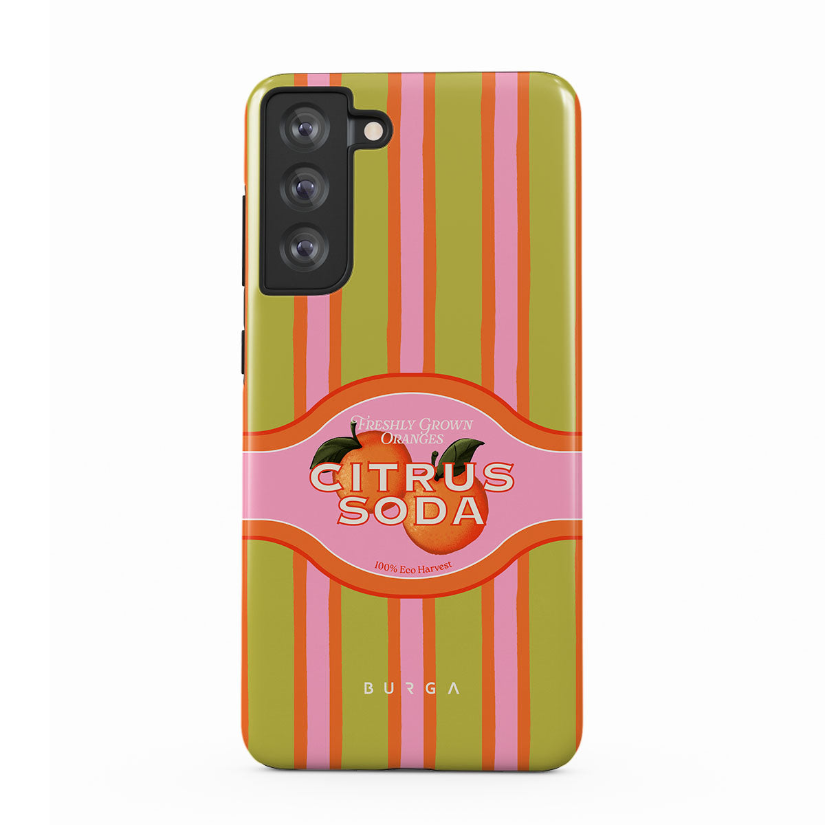 此設計特色: 鮮豔的柑橘條紋,文字,柑橘植物,蜜柑,葡萄柚