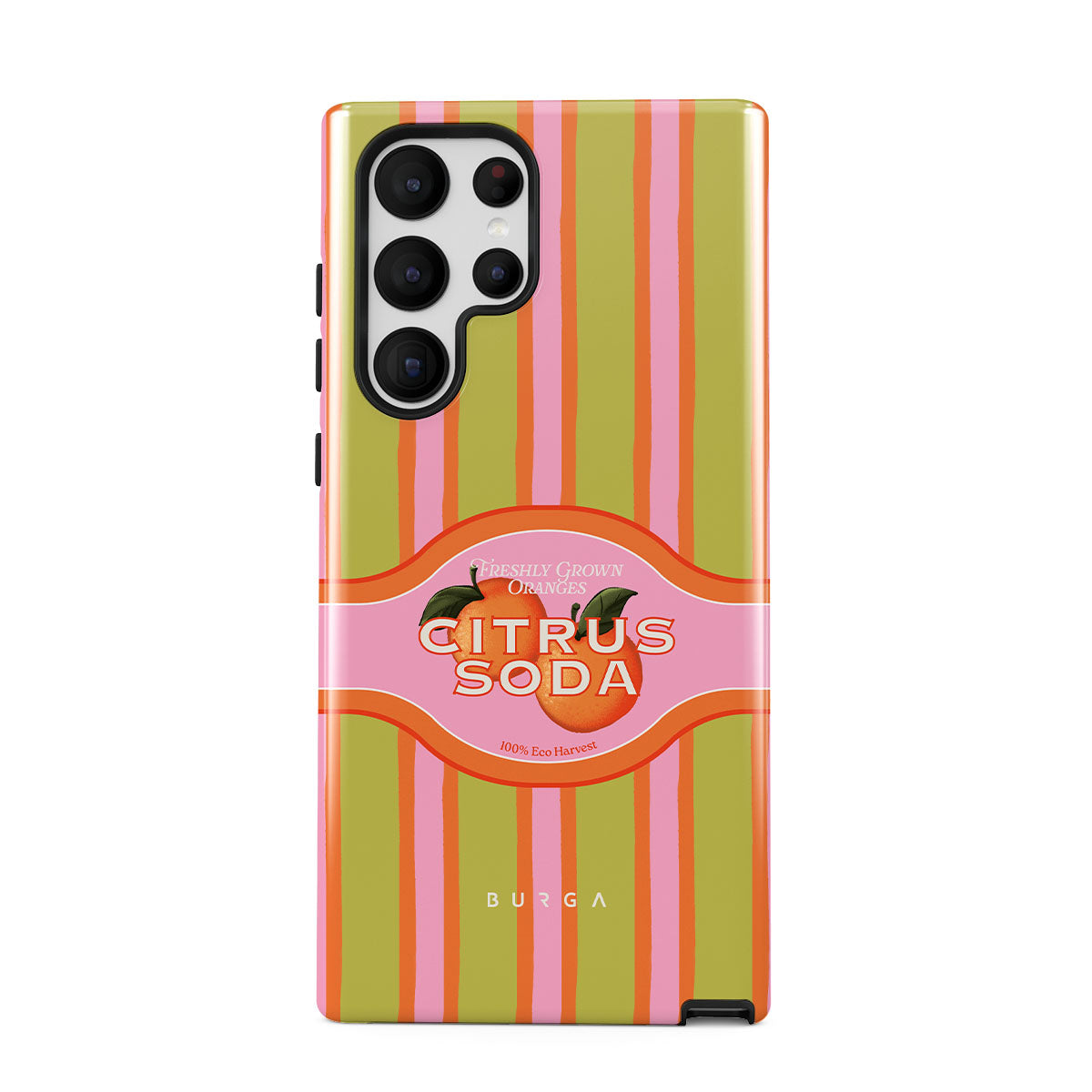 此設計特色: 鮮豔的柑橘條紋,文字,柑橘植物,蜜柑,葡萄柚